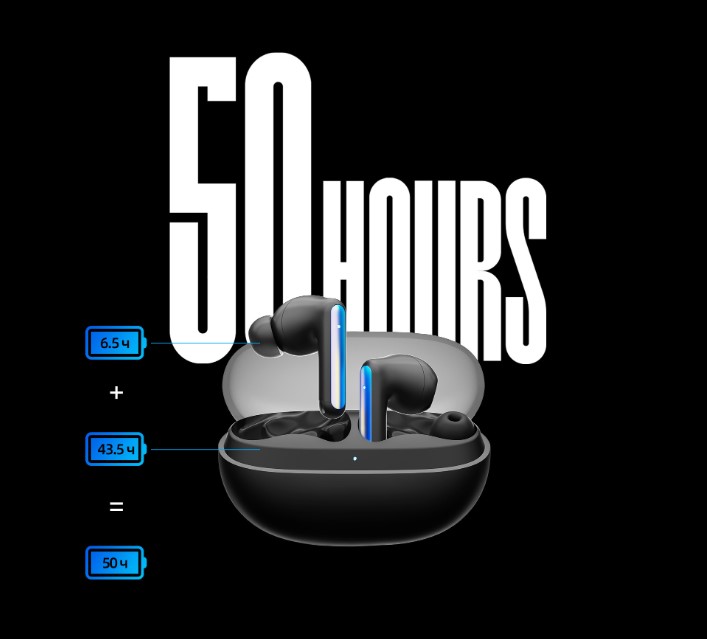 | Время работы (с зарядным кейсом) | 43.5 ч |