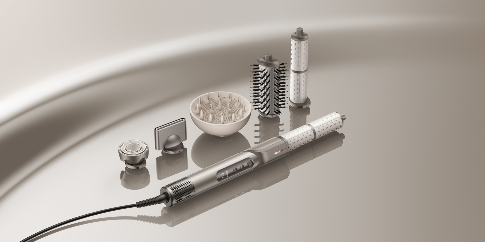В комплекте шесть насадок, включая диффузор, концентратор, насадки для разглаживания, завивки и овальную щетку. Такой набор закрывает основные сценарии — от быстрой повседневной сушки до объемной укладки и работы с текстурой волос. Насадки легко снимаются и фиксируются.