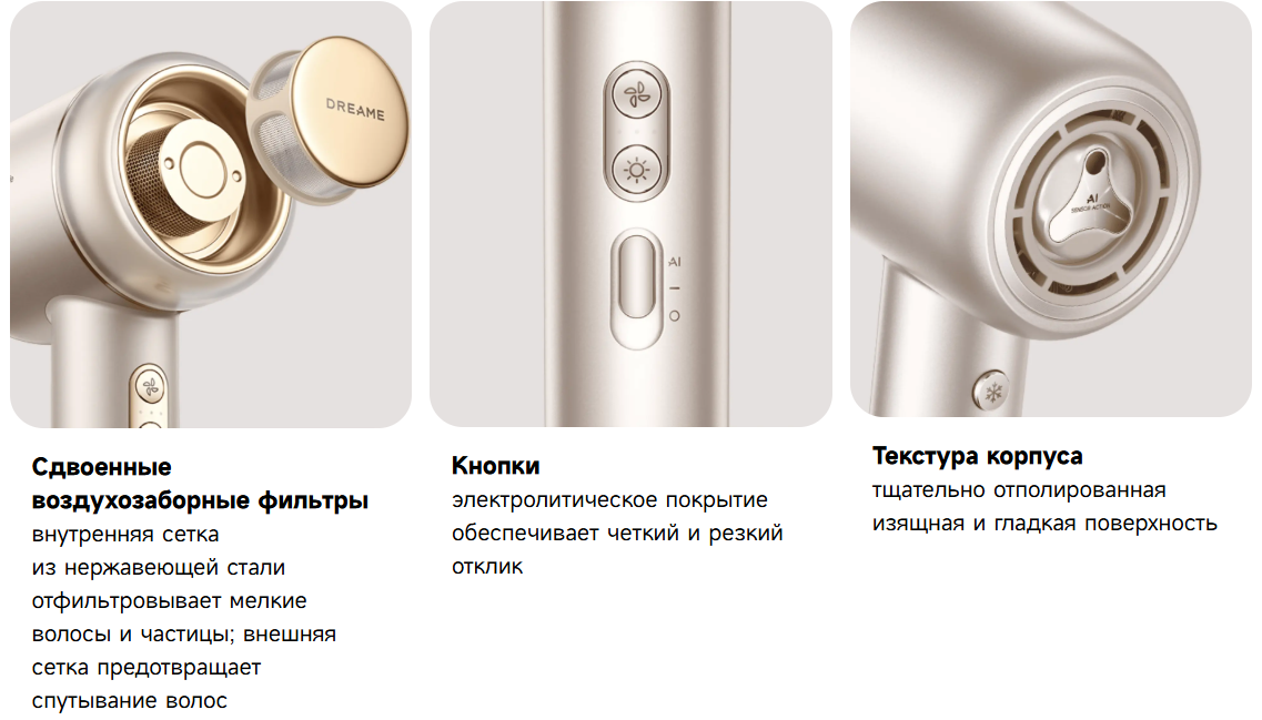 Обзор Фен Dreame Gusto High-speed золотистый