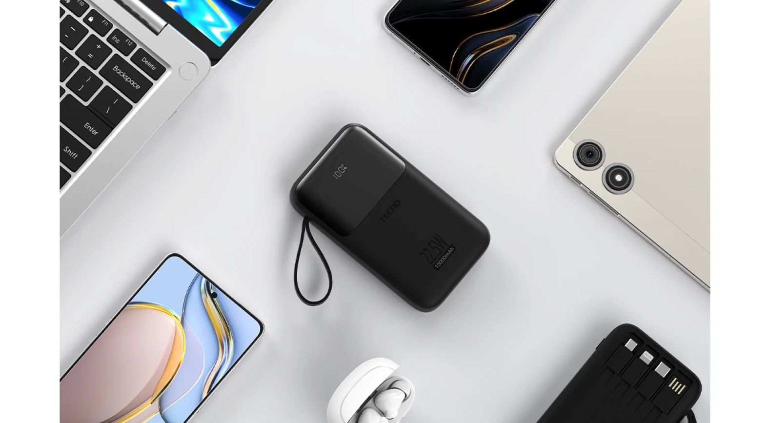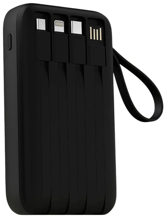 Ключевая особенность Tecno S101Q — четыре встроенных кабеля, которые делают использование максимально удобным. В корпус интегрированы кабель Lightning для устройств Apple, кабель microUSB для более старых гаджетов, кабель USB Type-C как универсальное решение и кабель USB-A, который работает как вход. Благодаря этому пауэрбанк подходит практически для любого современного или устаревшего устройства без необходимости носить с собой дополнительные провода.